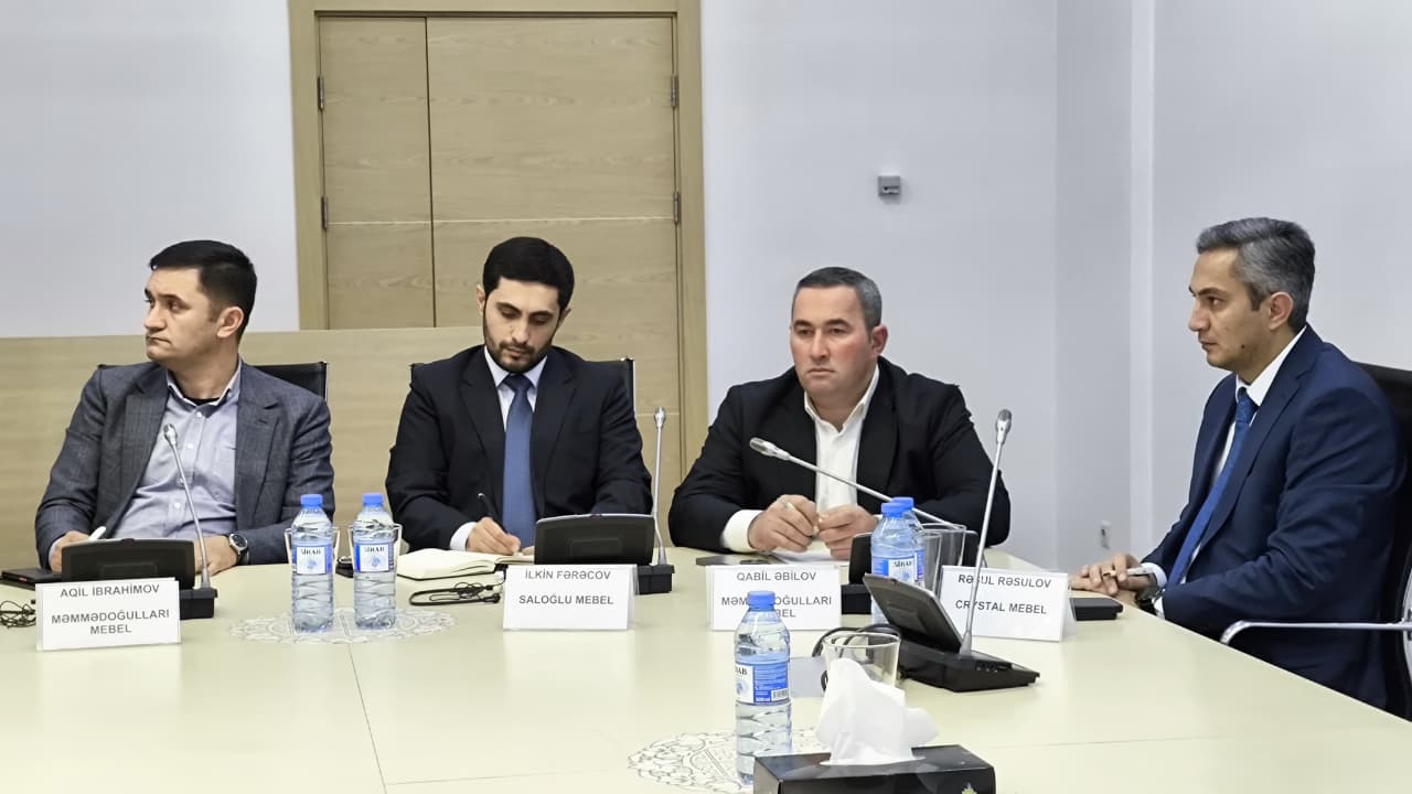 Azərbaycan Mebel İstehsalçıları Assosiasiyası AZPROMO mebel ixrac potensialı Azərbaycan mebel sənayesi inkişafı qeyri-neft ixracının artırılması dövlət dəstəyi mebel sektoru ixracın təşviqi tədbirləri logistika xərcləri problemi nəqliyyat xərclərinə dövlət subsidiyası beynəlxalq bazarlara çıxış ixrac prosesində çətinliklər sənaye kooperasiyası mebel istehsalçıları ilə işgüzar görüş Fərman İslamlı Fərid Fərzəliyev Azərbaycan mebel şirkətləri Embawood Foriella MMC Perla Saloğlu Qardaşlar Məmmədoğulları Crystal Mebel Panarea MMC Woodpecker Greenwood Damla Mebel orta və kiçik mebel istehsalçıları ixrac strategiyası 2026 investisiya təşviqi agentliyi sənaye ixracı Azərbaycan