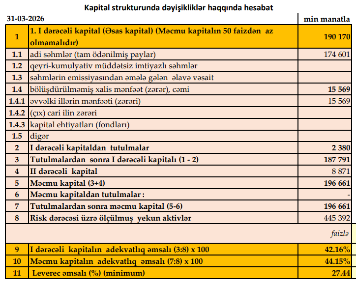 Bank 2025-ci ilin ilk rübünü 1 milyon 582 min manat xalis mənfəət ilə bağlamışdı.