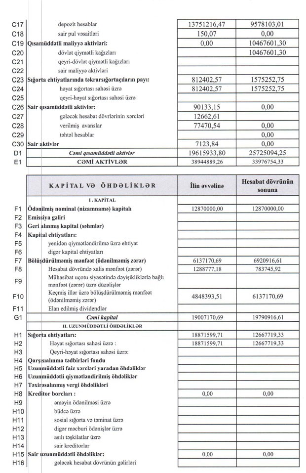 Müqayisə olunan dövrdə şirkətin topladığı sığorta haqları 8 milyon 760 min manatdan 7 milyon 487 min manata, sığorta ödənişləri isə 11 milyon 363 min manatdan 9 milyon 439 min manata geriləyib. Şirkətin aktivləri isə 40 milyon 457 min manatdan 33 milyon 977 min manata düşüb.