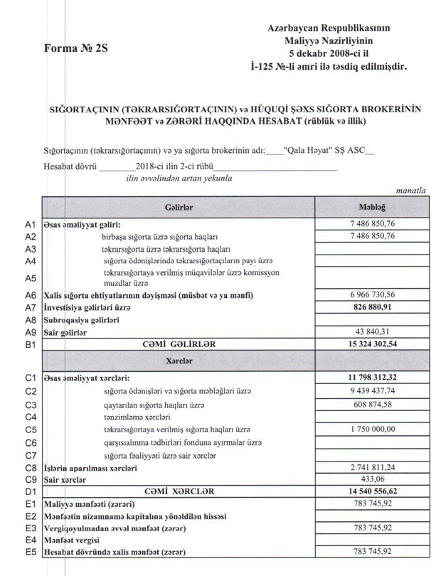 Müqayisə üçün qeyd edək ki, 2017-ci ilin birinci yarısında “Qala Həyat”ın cəmi gəlirləri 18 milyon 736 min manat, cəmi xərcləri 17 milyon 627 min manat, xalis mənfəəti isə 1 milyon 109 min manat təşkil etmişdi.