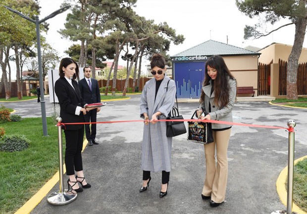 Birinci vitse-prezident Mehriban Əliyeva istirahət və sağlamlıq mərkəzinin rəmzi açılışını bildirən lenti kəsib.