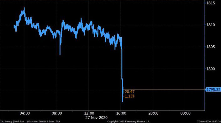 Qızılın ucuzlaşmasına koronavirusa qarşı peyvəndlərin tapılması və ABŞ seçkilərinin nəticəsinə dair qeyri-müəyyənliyin azalması səbəb olur.