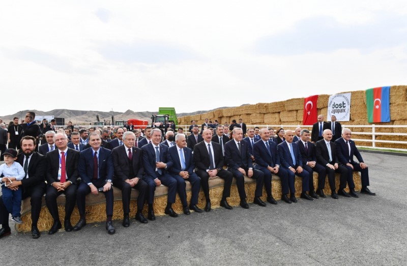 Səhv etmirəmsə, Yunus Əmrə şeirlərinin birində yazırdı ki, Allah bir buğda dənəsindən, bir sünbüldən yüz minlərlə dənə yaradır. İndi burada da bunun bənzərini görəcəyik. Bu sünbüllər, İnşallah, dənələrə çevriləcək və buradan Azərbaycana, Türkiyəyə və bütün dünyaya göndəriləcək. Bunu unutmayaq, artıq heyvandarlığın, kənd təsərrüfatının dünyada mühüm yer tutmalı olduğu bir zamana giririk. Əminəm ki, İlham qardaşım bu sahədə çox önəmli bir addım atır, bunu reallaşdırır. Bura artıq bir taxıl anbarı, heyvandarlıq baxımından bir bərəkət tarlası və bir çox ölkənin də, İnşallah, qapısını döyəcəyi bölgəyə çevriləcək.