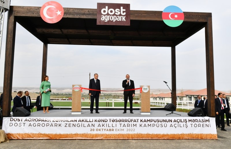 100 milyon dollar dəyərində sərmayə qoyulacaq, 500 nəfər işlə təmin olunacaqAzərbaycan Respublikasının Prezidenti İlham Əliyev və Türkiyə Respublikasının Prezidenti Rəcəb Tayyib Ərdoğan Zəngilan rayonunda “Dost Aqropark” ağıllı kənd təsərrüfatı kompleksinin birinci mərhələsinin açılışında iştirak ediblər.