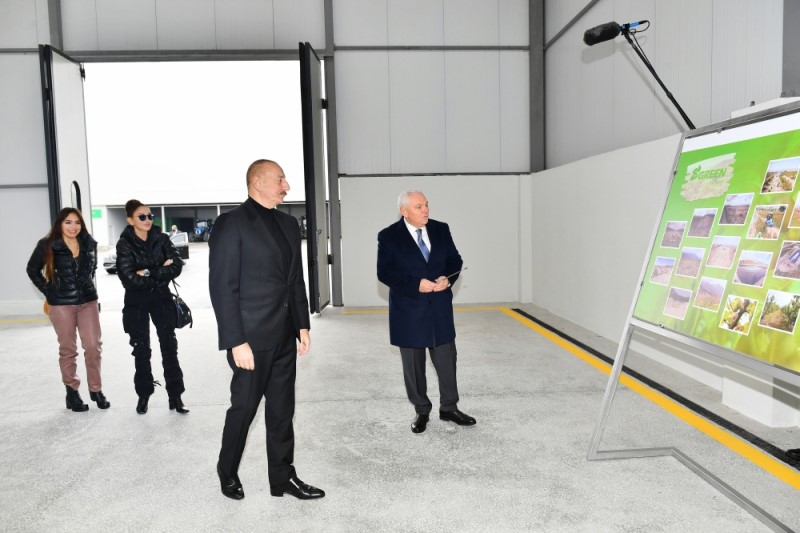 Azərbaycan Respublikasının Prezidenti İlham Əliyev, birinci xanım Mehriban Əliyeva və qızları Leyla Əliyeva dekabrın 2-də Şəkinin Orta Zəyzid kəndində “Green Factory” Məhdud Məsuliyyətli Cəmiyyətinin (MMC) quru meyvə istehsalı müəssisəsində yaradılan şəraitlə tanış olublar.